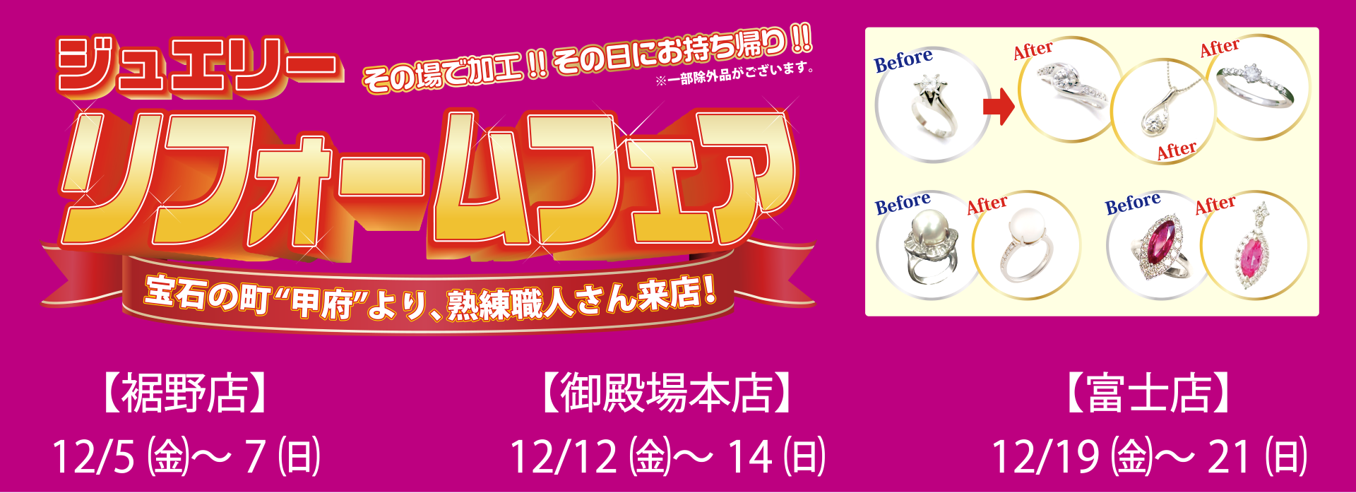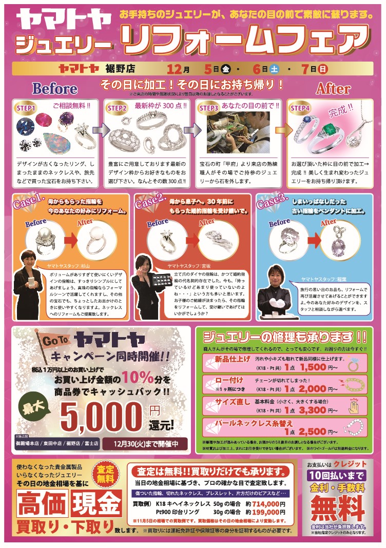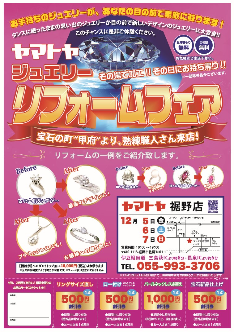 ヤマトヤの恒例イベント・ジュエリーリフォームフェアを開催します♪